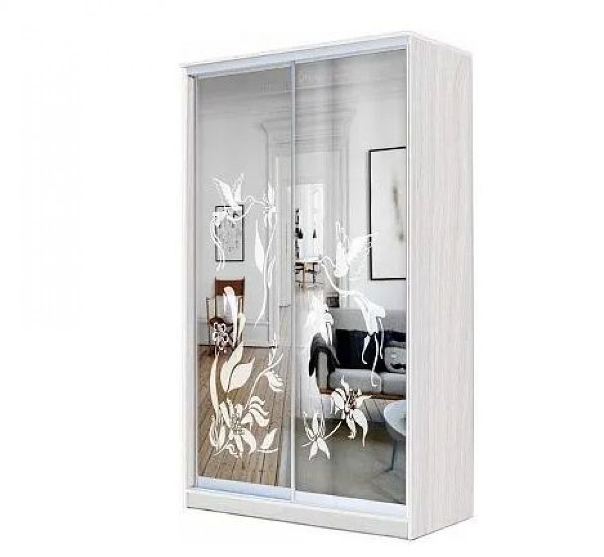Фасад: 2 двери Зеркало с пескоструйной обработкой